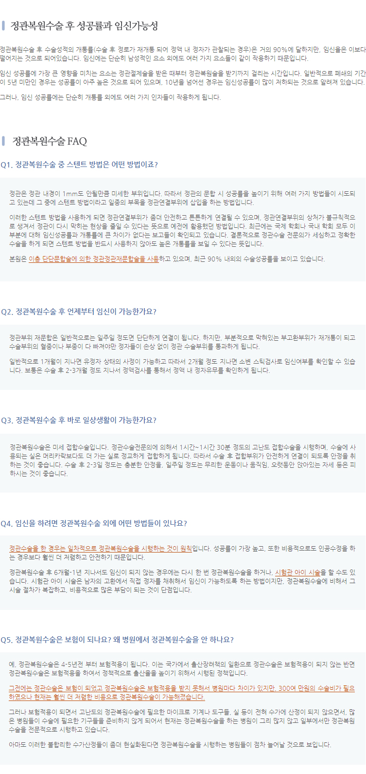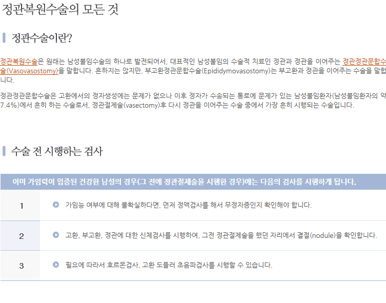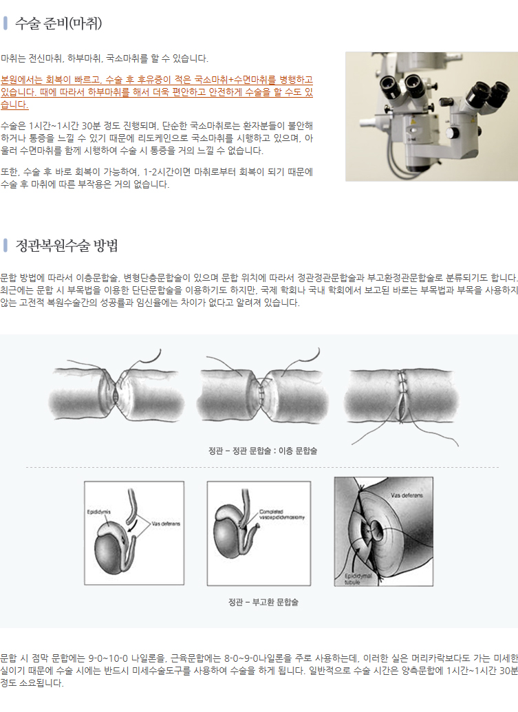 * 정관복원술 문의